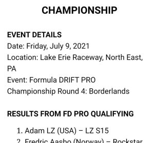 Qualifying Results from the Pennsylvania Round of the 2021 Formula DRIFT Championship