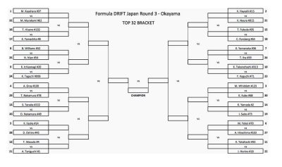 @formuladjapan Top 32 Bracket for Round 3 – Okayama •