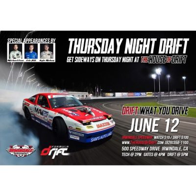 Join us tomorrow for Thursday Night Drift at Irwindale Speedway. These Thursday night sessions will ...