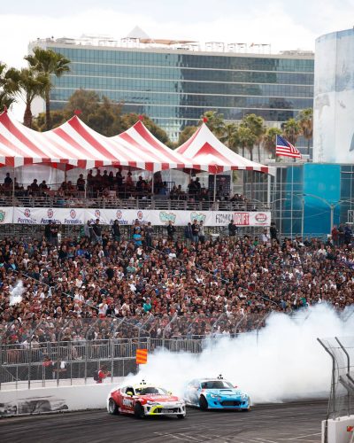 Tire smoke and packed stands on the streets of Long Beach. 📸 @larry_chen_foto
