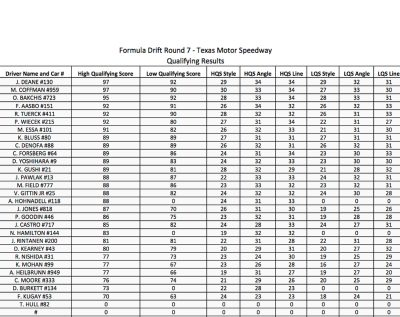 Formula DRIFT PRO Round 7 @autozone Showdown @txmotorspeedway Qualifying results and TOP 32 bracket.