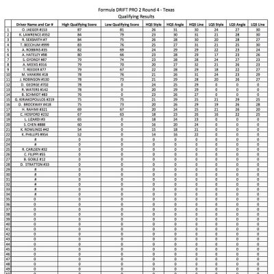 Formula DRIFT PRO 2 – Texas Motor Speedway Qualifying results and TOP 16 bracket.