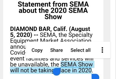 SEMA Show will not be taking place in 2020