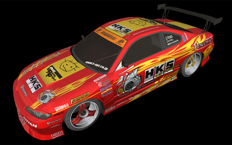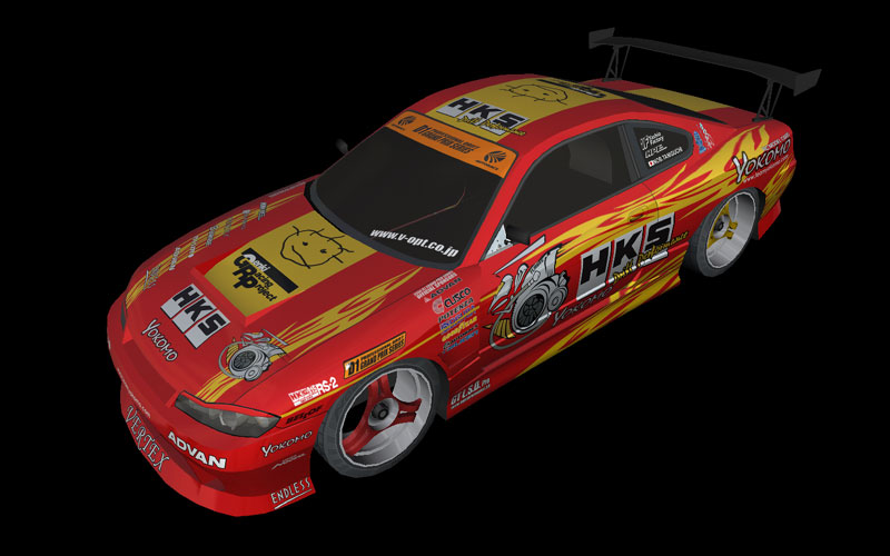 As I don't have a real driftcar anymore, I have to make my own virtual cars. I've allready got the Apex'i RX-7 and the Blitz skyline almost done (thanks to DaMotax), and now I'm working on the HKS Silvia. However, I have one problem. I can't figure out all the sponsors on the side skirts. So I need some help...