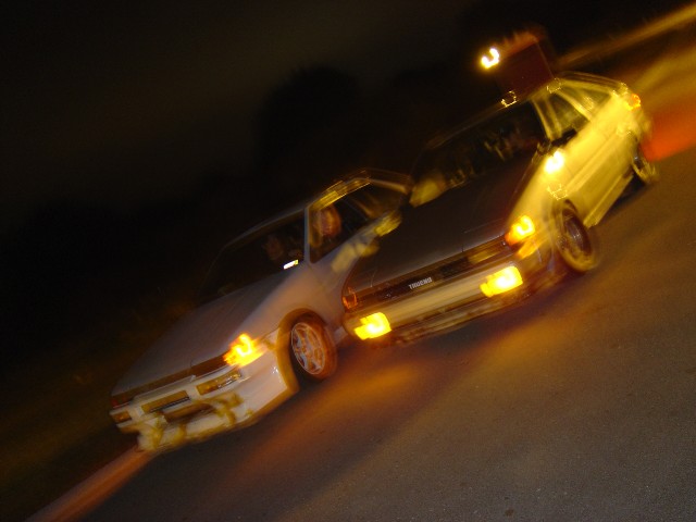 I just wanted to post some pics. boredome I guess. The car on the left is my friend geoff and I'm on the right:
