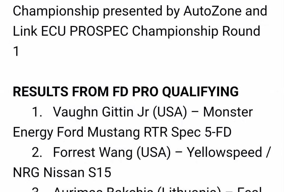 QUALIFYING RESULTS FROM ROUND 2 OF 2023 FORMULA DRIFT PRO AND ROUND 1 OF PROSPEC CHAMPIONSHIPS IN ATLANTA