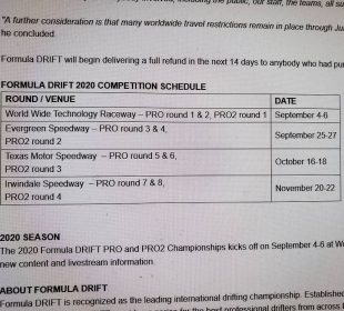 Formula Drift 2020 Schedule – June 11th Revision